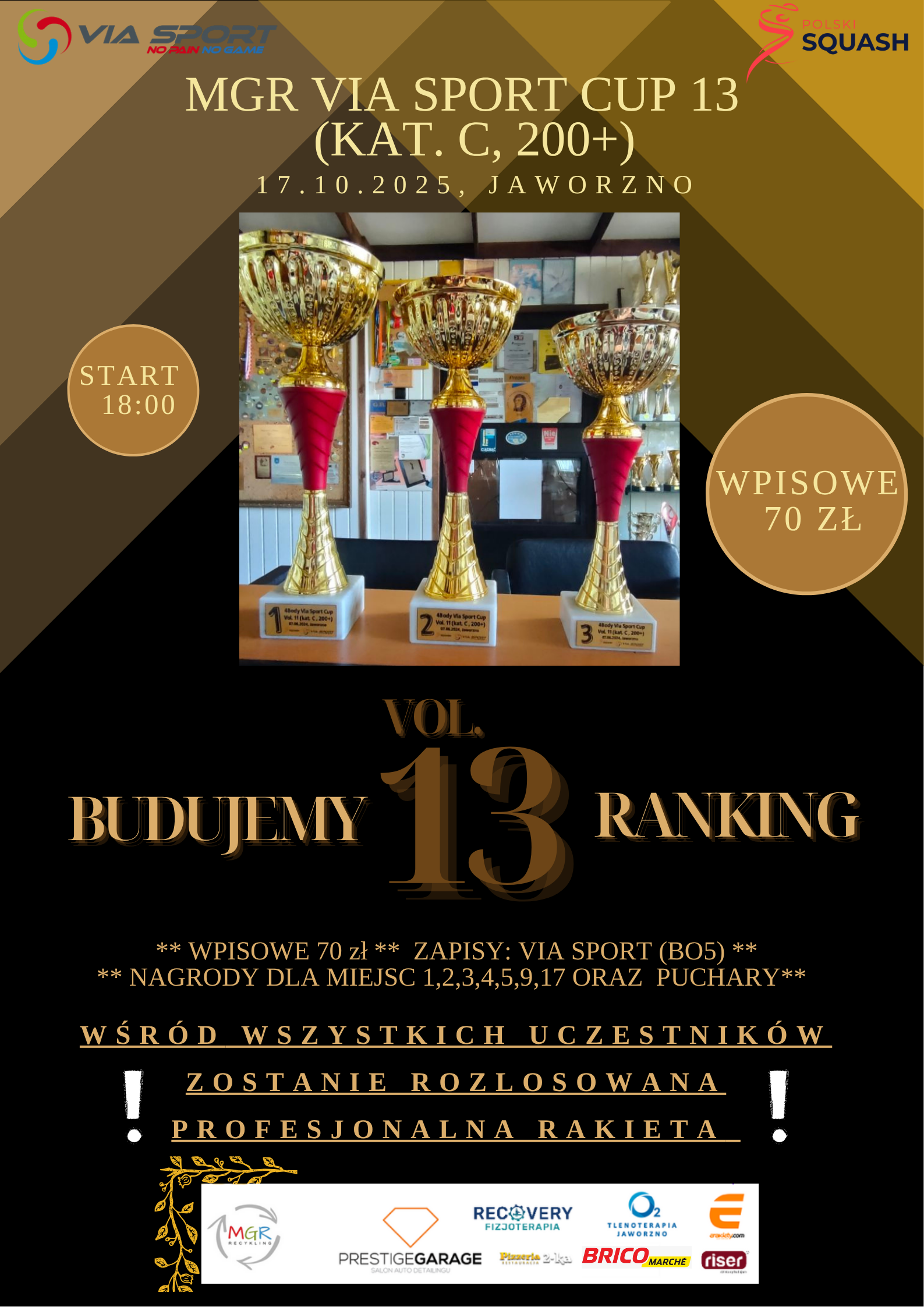 Turniej pod patronatem Polskiego Związku Squasha (PZSQ). Turniej (będzie) zgłoszony do kalendarza PZSQ jako turniej kategorii C+ Open.